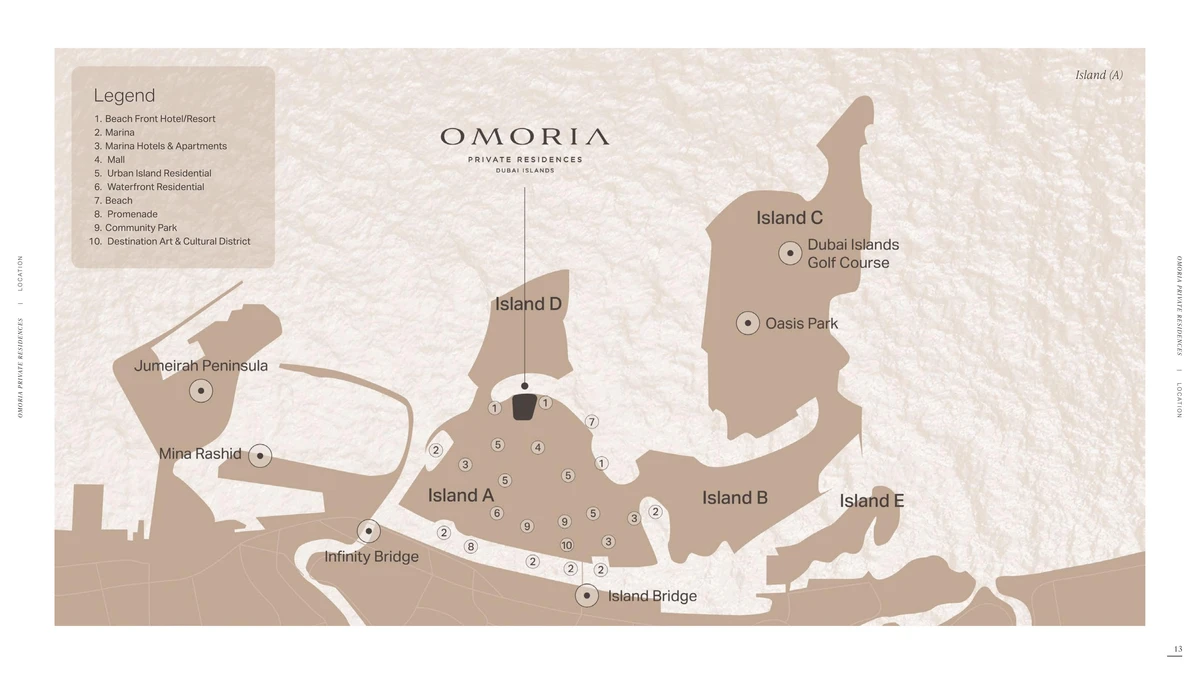 Dubai Islands offers prime accessibility directly to the LOCATION OMORIA PRIVATE RESIDENCES heart of the city. Two bridges are currently under construction that will provide direct access to downtown Dubai and Sheikh Zayed Road, easily bypassing traffic and cutting down travel time by 8-10 minutes.