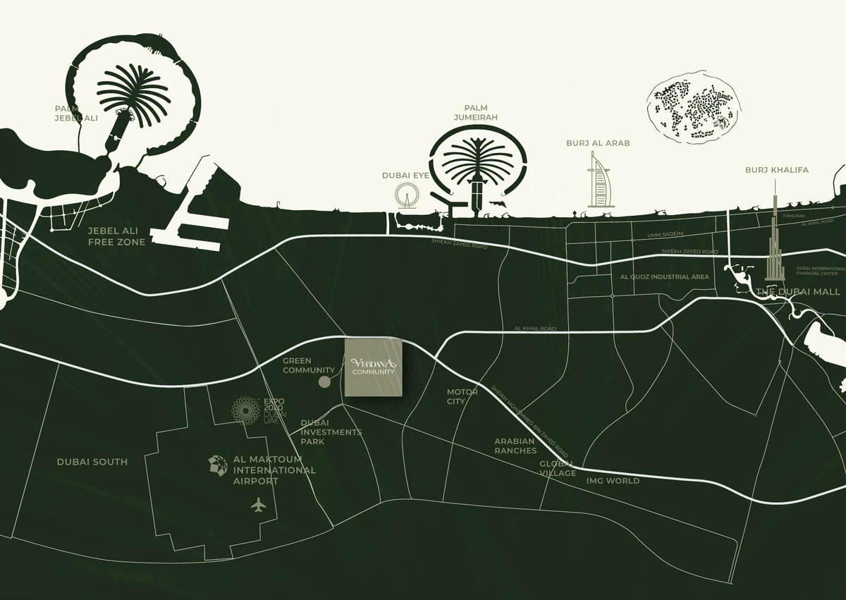 Nestled in the heart of Dubai Investments Park, Verdana 8 offers seamless access to the city’s most iconic destinations. From the buzzing Dubai Marina and thrilling Dubai Parks to the iconic Palm Jumeirah, Burj Khalifa, and Mall of the Emirates, everything is just moments away. Here, urban vibrancy meets peaceful green surroundings, striking the perfect balance between connection and calm.