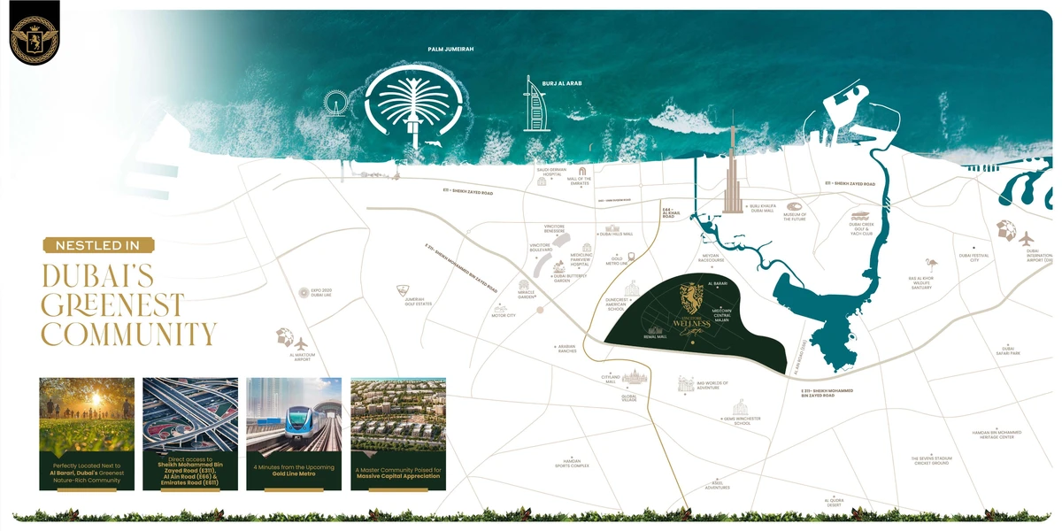 Strategically situated in Dubai, Vincitore Wellness Estate offers easy access to major roadways, shopping centers, schools, and healthcare facilities. Its location ensures that residents can enjoy the best of city living while retreating to their peaceful oasis.