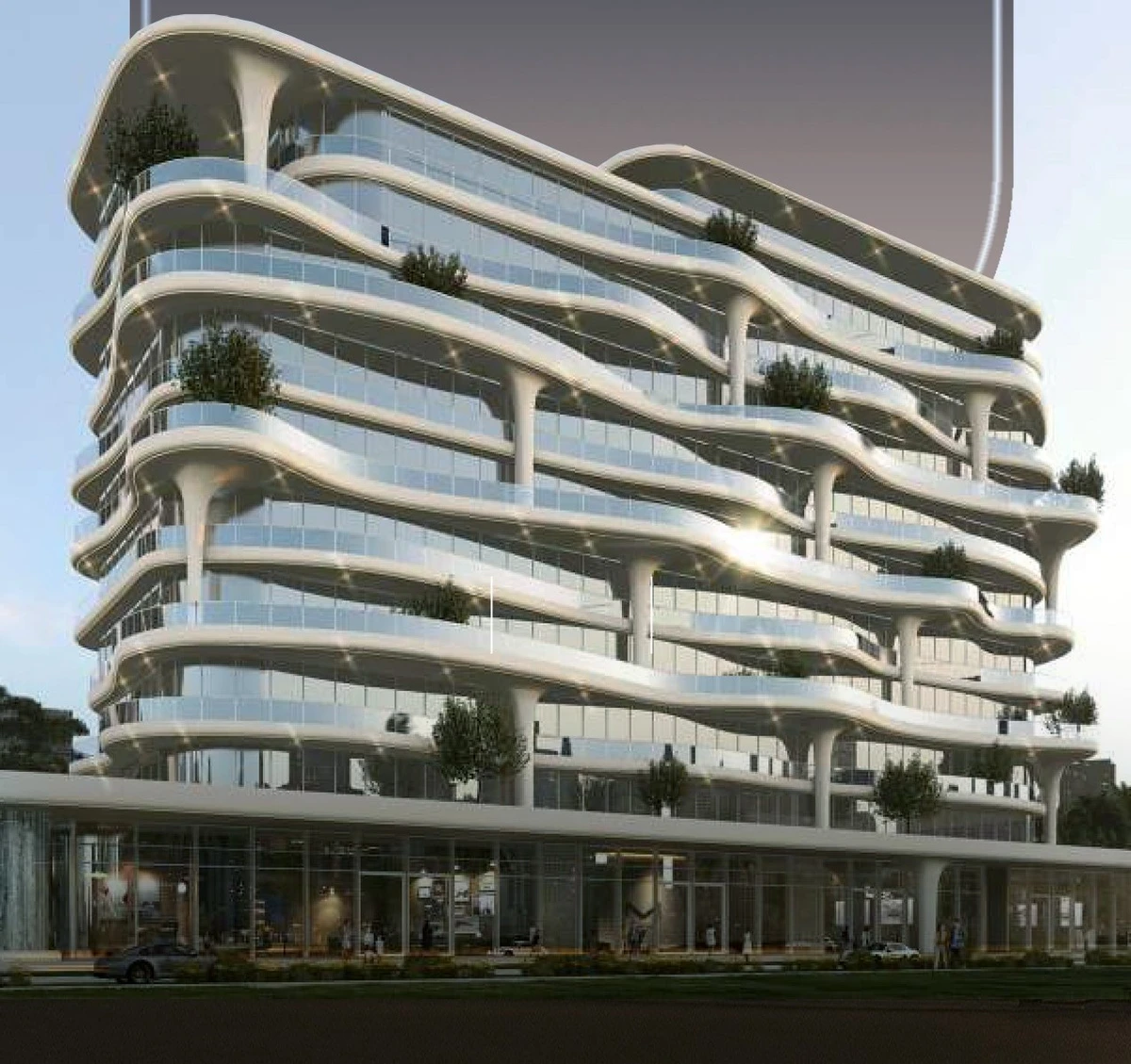 Inspired by the intricate forms ofliving corals,this architectural master piece rises gracefuly alongthe Meydan Rivieracanal.