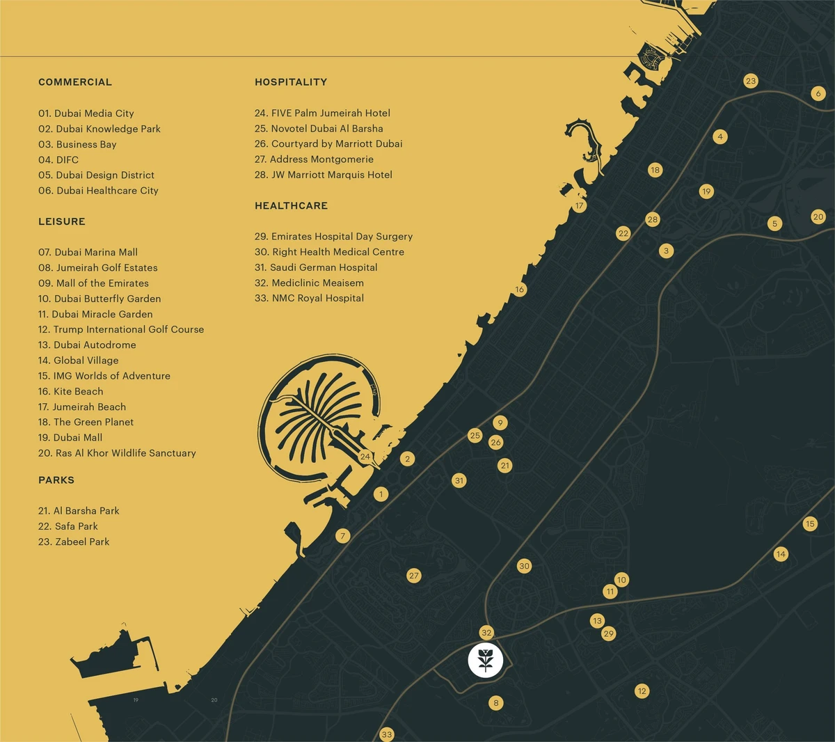 Ivy at Parkfive champions the harmony of nature, wellness, and sustainable design. At the community’s foundation are ‘Sikkas’—authentic Arabian walkways that curve through expansive green zones and communal spaces. These organic pathways, complemented by rich vegetation, foster a dynamic community where artistic expression and human connection take root.