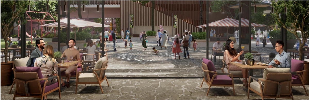 Parkfive’s ground level offers vibrant community space. Ivy features amenities across its podium, 8th floor and rooftop with breathtaking views. Shaded areas and indoor-outdoor transitions create sanctuaries for connection and solitude.