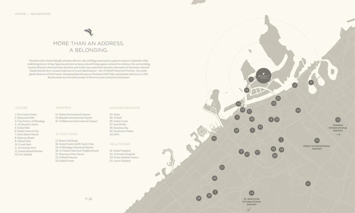 Strategically positioned between Dubai’s dynamic urban core and serene waters, this location offers seamless connectivity and complete sanctuary.