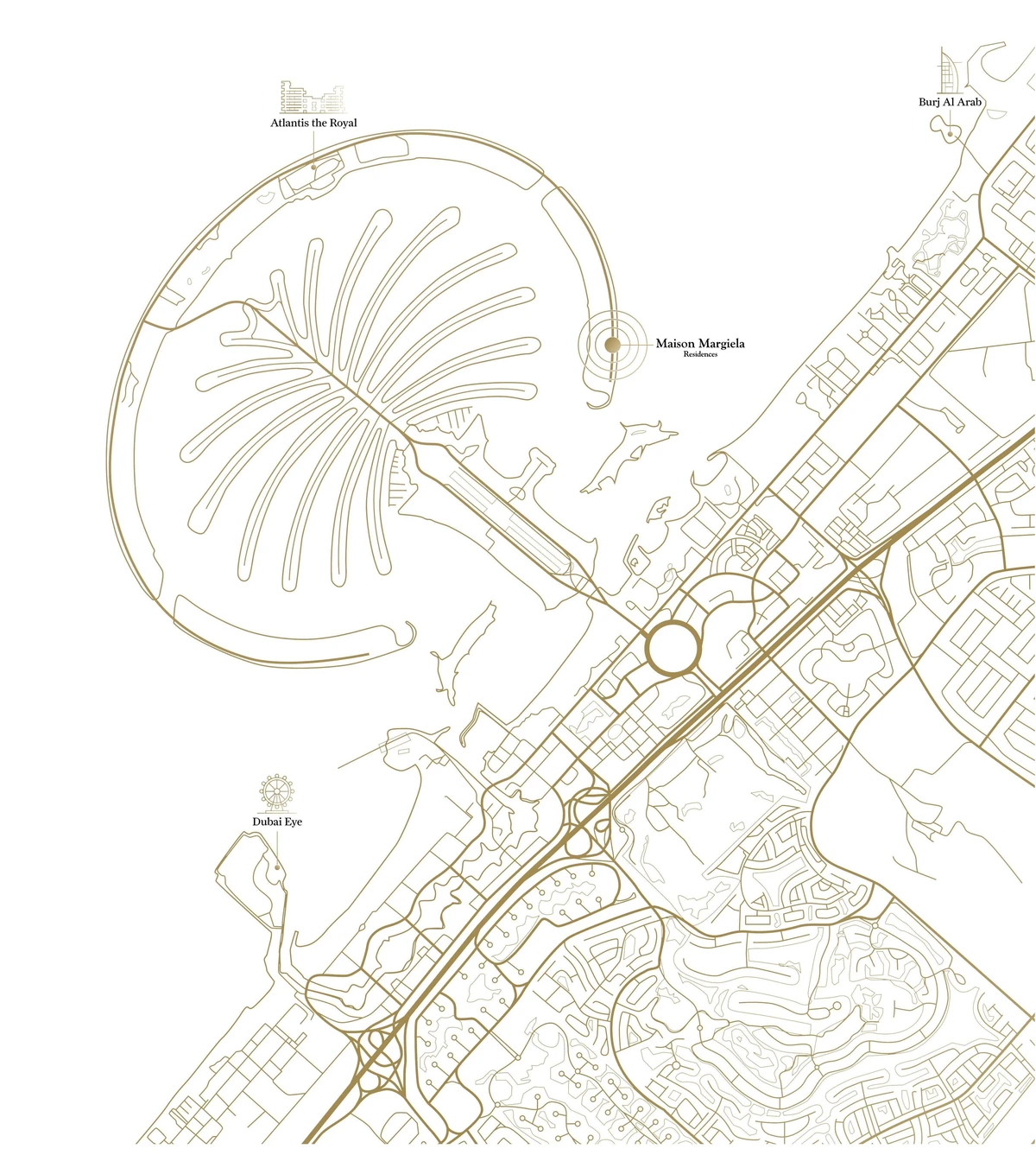 Set on the iconic Palm Jumeirah, the Maison Margiela Residences offer more than a view, they offer perspective. Panoramas of the Arabian Gulf and Dubai skyline unfold like a shifting canvas, framing each moment with tempered precision