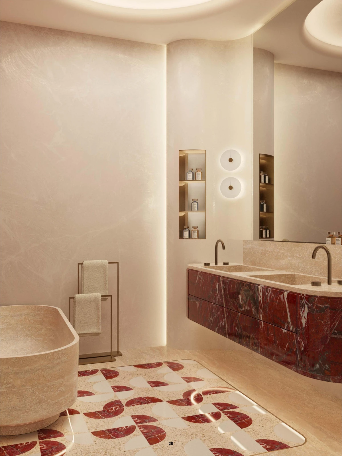 Maison Margiela Residences reinterpret the idea of beauty in architecture, replacing spectacle with intimacy, and opulence with poetic restraint. Designed by Maison Margiela, these homes reimagine heritage through the lens of craft. Organic materials like travertine, marmorino, and brushed metal ground the spaces in quiet honesty, while sculpted finishes and tonal textures evoke an atmosphere of quiet refinement.