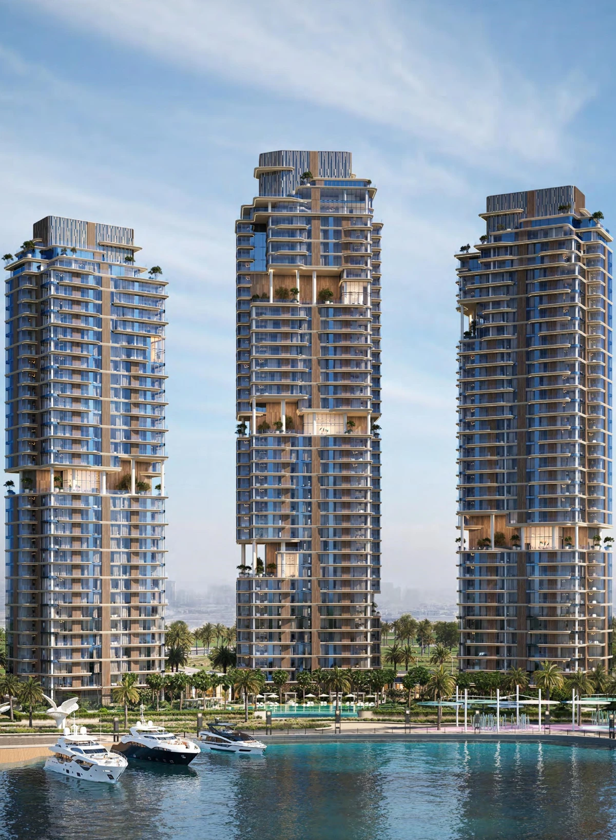 Gracefully positioned along the waterfront, this architectural trio strikes a balance between bold presence and quiet elegance. Terraces ripple like water, while elevated sky gardens blur the line between nature and structure, blending landscape and skyline with effortless fluidity.