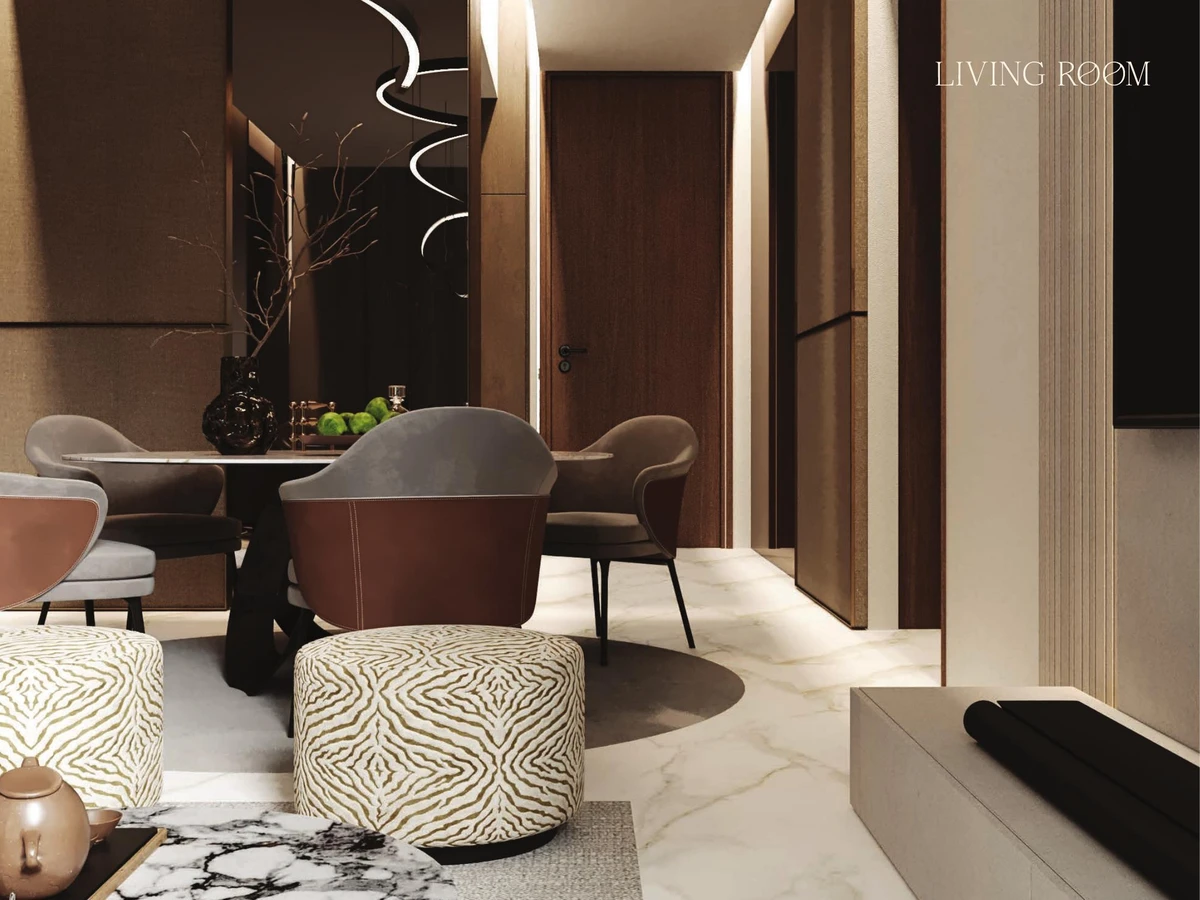 Inside, the residences are designed for comfort and elegance, with open layouts, refined finishes, and a natural color palette that enhances light and space. Each home invites residents into a peaceful retreat — an intimate sanctuary that blends modern design with a sense of harmony and warmth. The interiors capture the essence of serenity, crafted to provide both style and functionality for contemporary living.