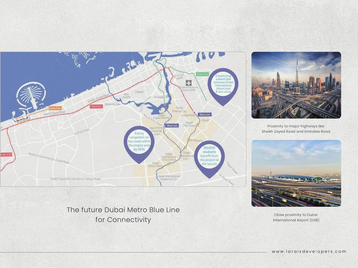 Zyra Hills by Laraix Developers emerges as a new icon of sophistication in Al Warsan, one of Dubai’s fastest-growing residential zones. Blending modern architecture with serene green surroundings, this development offers studios and 1 to 3-bedroom apartments starting from AED 557,000. With unit sizes ranging from 409 to 1,517 sq. ft., each home features smart layouts, elegant finishes, and abundant natural light. Residents enjoy resort-style amenities such as a pool, fitness center, and open-air cinema, all within 20 minutes of Downtown Dubai. Designed for modern lifestyles and strong investment appeal, Zyra Hills combines urban convenience, refined design, and lasting value in one exceptional address.